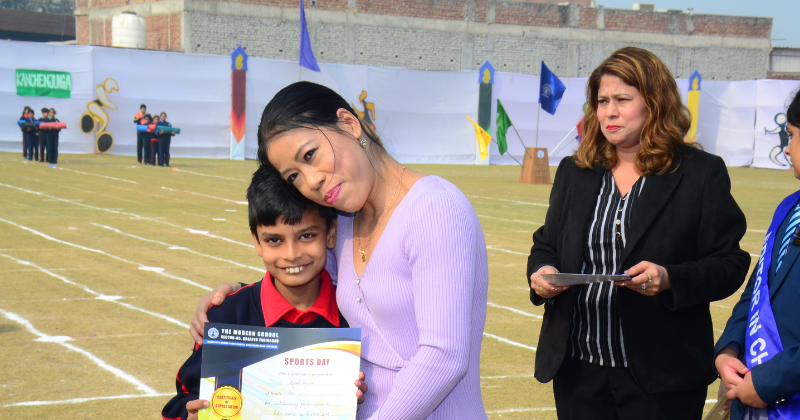 The Modern School at Sector 85, Greater Faridabad, witnessed a grand celebration of athleticism and sportsmanship during its Annual Sports Day. The event was graced by the presence of the renowned Indian boxer, MC Mary Kom, who honored the occasion as the Chief Guest. The school was also privileged to host several other esteemed dignitaries. The ceremony commenced with an impressive Guard of Honor conducted by the disciplined NCC cadets. Their precision and dedication set the tone for an eventful day ahead. Sports Day unfolded with a series of races that showcased the agility, speed, and spirit of the students. The participants, from various grades, competed fiercely in events ranging from sprints to relays, creating an atmosphere of excitement and healthy competition. The drills presented by students were a mesmerizing display of synchronization, discipline, and coordination. The meticulously choreographed routines were a testament to the hard work and dedication put in by both students and instructors. A moment of great pride and joy was the announcement of the Overall March Past Trophy. Everest House emerged victorious, showcasing exceptional unity, precision, and teamwork. The House Trophy, recognizing outstanding performances across all events, was awarded to Kanchenjunga House, making them the epitome of excellence. The Chief Guest, MC Mary Kom, addressed the gathering with inspirational words, encouraging the students to strive for excellence not only in sports but in all aspects of life. Her presence added a significant touch of motivation and aspiration to the event. In conclusion, The Modern School’s Annual Sports Day was a splendid affair, promoting not just physical fitness but also the values of teamwork, discipline, and resilience. The achievements of the students, combined with the presence of esteemed guests, made it a memorable day for the entire school community. The event reflected the school’s commitment to holistic education, nurturing both the minds and bodies of its students.