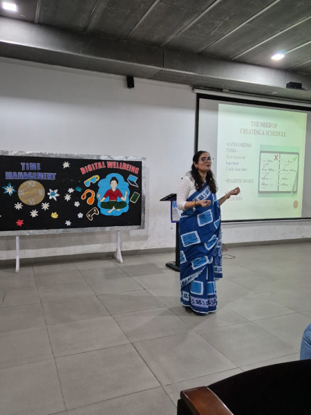 The workshop on digital well-being and time management for parents of Pre-Nursery to Grade 7 was organized by Ms. Vanshika Batra, School Counselor of The Modern School, Greater Faridabad, to address the growing concerns regarding the impact of excessive screen time and prioritize our time. The session began with a warm welcome to all attendees, highlighting the significance of the topic and the objective of the workshop. The session was interactive, and parents gained insights from the workshop on creating a balance and establishing healthy bonding with their children.