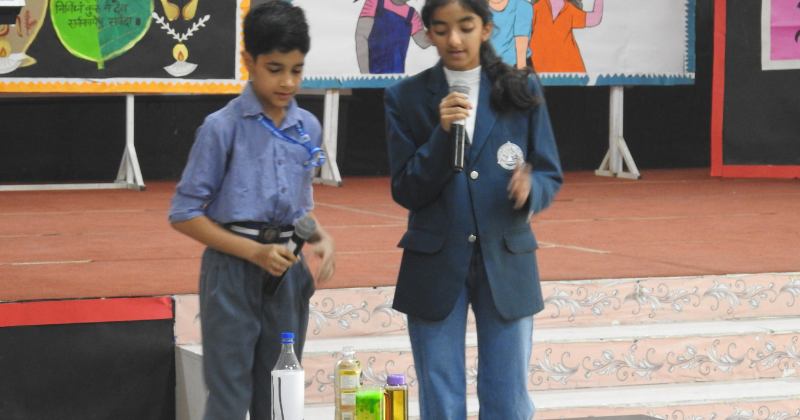 To teach the concepts of science to students, an experiment about the lava lamp was performed by the students in the morning assembly. The experiment was an insight into the concepts of density, polarity and acid-base reaction in a colorful way to show the reaction when baking soda reacts with vinegar to form bubbles. The role of polarity and density in the reaction was discussed. Students found this activity very interesting and were intrigued to learn about many concepts of science.