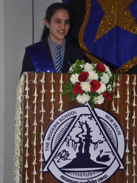The investiture ceremony of The Modern School was held on 6th July 2024. This prestigious event marked the formal induction of newly elected student leaders and office bearers.Prof. Jyoti Raina, Chairperson, The Modern School, Faridabad graced the occasion as the chief guest. It was a proud moment for the parents and teachers to see the students being felicitated on the stage and step into the new responsibilities. The ceremony began with invoking the divine blessings followed by classical dance performance. In her speech, Meera Malhotra Academic Director, Modern School emphasized that leadership is not about titles but instilling values and culture which promotes a sense of taking responsibility for each and every action. She said that the dedicated efforts of teachers and parents together creates the leaders of tomorrow. The school introduced a new concept of having school prefects instead of school Head Boy, Head Girl. The purpose of this initiative was to recognize the unique talents of students and nurture their leadership qualities which would enable them to take on the future challenges. A total of 39 members were presented badges and sashes by the chief guest ,symbolizing their new roles and responsibilities. The students took the oath of abiding by the school's values and taking the legacy forward. The newly elected prefects delivered acceptance speeches ,expressing their gratitude and outlining their vision for the session. The chief guest in her speech congratulated the students and appreciated the efforts made by the staff to make the event a success. She reiterated the significance of dedication and the impact of student leaders on the school community. The event concluded with a vote of thanks by expressing gratitude to the chief guests, parents and teachers for their presence and support.