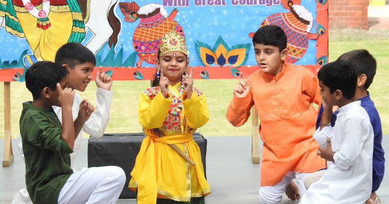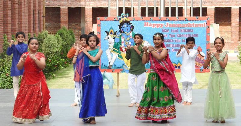 A special assembly on the occasion of Janmashtami was conducted by the students of Grade P4B which was marked by devotion, cultural performances and acts of goodwill. The highlight of the assembly was a play on the childhood of lord Krishna. The spectacular performance by the students was much appreciated by the spectators. Amidst mirth and cheer, the celebration continued in the junior wing. The mothers of the Pre-Primary wing children immersed themselves in an array of activities. They participated in various activities like making the idol of Krishna with clay, Krishna's Crown Making, on fire cooking, decorating jhula of Lord Krishna. The play area was beautifully decorated with flower garlands, rangoli and images of Lord Krishna. The atmosphere was filled with a sense of devotion and festivity. The students dressed as Krishna, radha were a spectacle to behold.