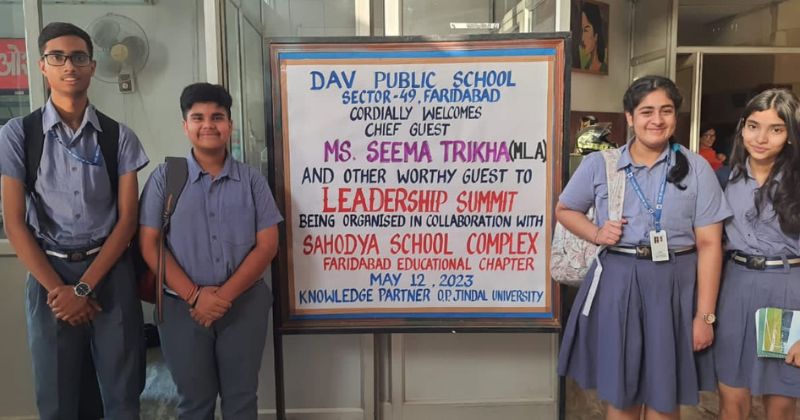 Four students of The Modern School, Sector – 85, Greater Faridabad : Aadvika Bhatia, Hardik Chauhan, Mukund and Shruti of Grade S6 along with Mentor – Ms. Saroj Bala joined the Leadership Summit at DAV Public School, Sector-49, on Friday, 12 May 2023 in collaboration with Sarodiya School Complex Faridabad Educational Chapter and knowledge partner - O.P. Jindal Global University, Sonipat. Students and Teachers of around 50 schools participated in this leadership Summit.