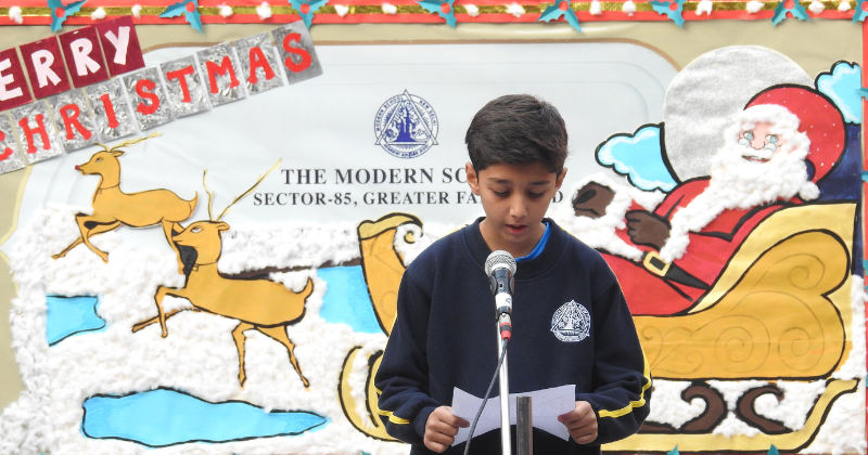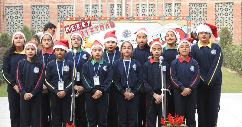 The special assembly for Christmas at The Modern School successfully captured the essence of the holiday season, fostering a sense of togetherness, joy, and goodwill. Through musical performances, dramatic presentations, and heartfelt messages, the assembly provided a platform for students to showcase their talents while reinforcing the values associated with Christmas. The event left a lasting impression, creating cherished memories for all who attended. The assembly began with a heartwarming carol singing performance by the students. They showcased their musical talents, spreading joyous melodies. Various dance performances added a lively and dynamic element to the assembly.