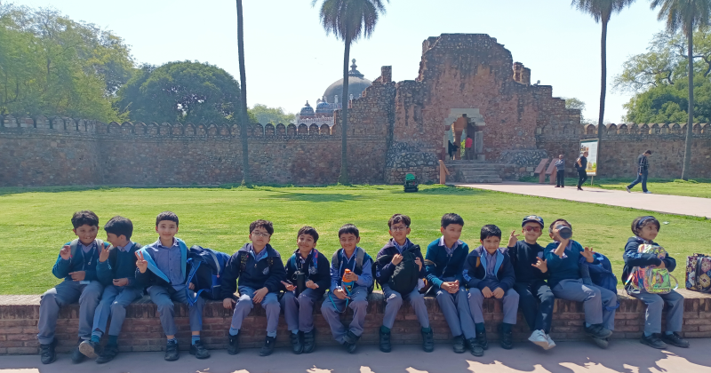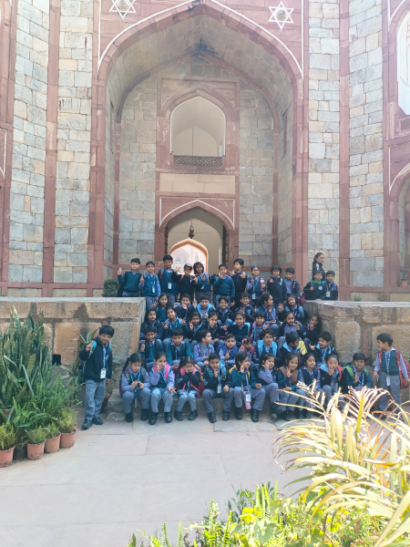 On February 28, 2024, students from Nursery to P2 enjoyed an educational excursion to Humayun's Tomb. This trip provided them with a deep understanding of the history of the walled city and the majestic red sandstone structure built by the Mughal Emperor Humayun. The students admired the intricate Mughal architecture and gained an appreciation for the importance of preserving national heritage. The Heritage Walk proved to be an enriching educational experience, instilling in the students a heightened sense of awareness, confidence, and responsibility, while also reinforcing values such as sharing, caring, and teamwork within their character.