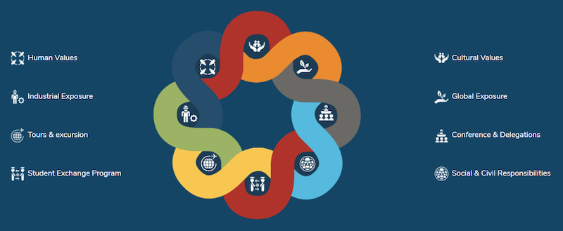 Our aim is to drive motivation to take our students beyond the rigid structures of classroom learning and present new ideas and programmes by providing them practical learning opportunities in industrial / service sector atmosphere, student exchange programmes with foreign countries, community engagement, experiential learning, and field experiences. We facilitate the real-life application of classroom theories which helps enrich our students’ overall educational experience.